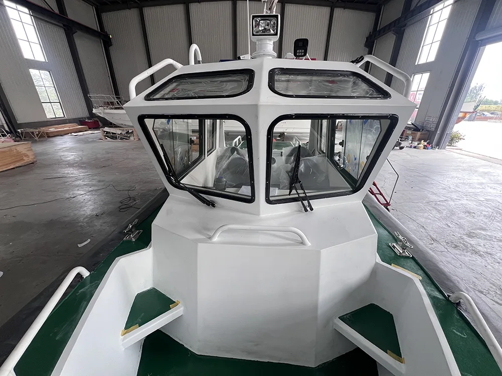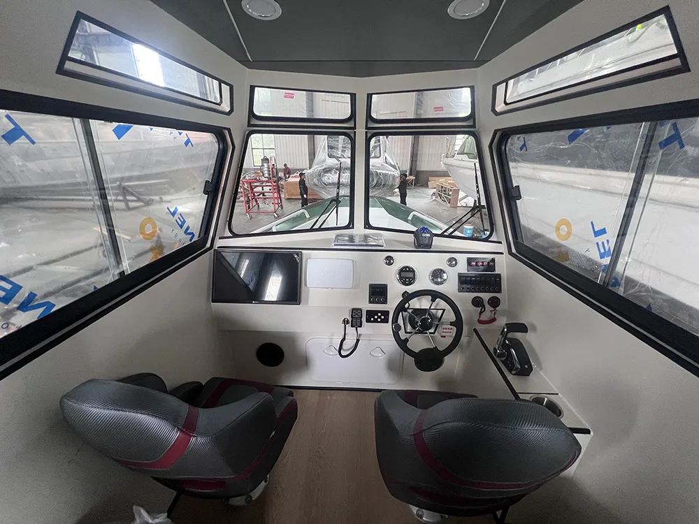 Лодка оснащена роскошными амортизирующими сиденьями и наклонными смотровыми окнами, обеспечивающими комфорт операторов и беспрепятственный панорамный обзор для повышения эффективности работы.
